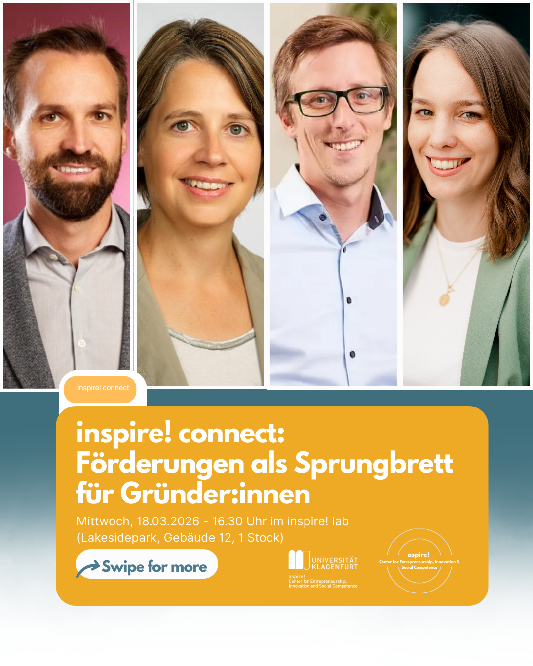 Du hast eine Idee und überlegst wie diese Idee auch umsetzbar ist. Beim nächsten inspire! connect Event im inspire! lab stehen dir Expert:innen für deine Fragen zur Verfügung.