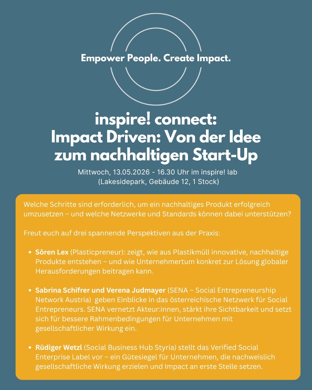 Ort: inspire! lab – Lakeside Park, Gebäude 12, Eingang A, 1. Stock